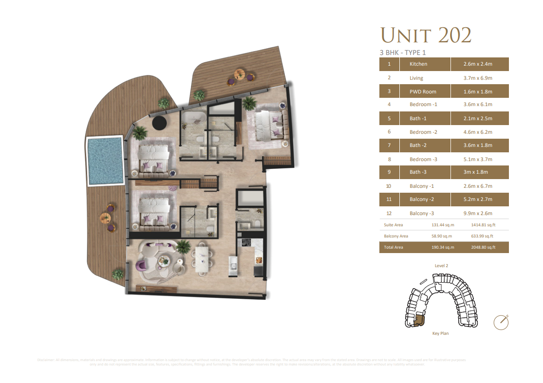 Taj Wellington Mews offers a range of beachfront residences, including studios and 1–3 bedroom apartments. Unit sizes range from 490 sq. ft. to over 5,000 sq. ft. Most homes feature one or more balconies, open-plan living areas, and sea-facing views. Larger units include multiple bathrooms, utility space, and optional maid’s rooms. All apartments feature high-quality finishes and offer access to dedicated basement parking.