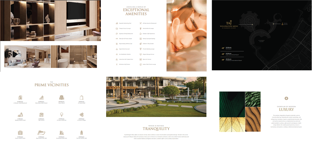 Taj Wellington Mews is located on Al Marjan Island, a master-planned coastal destination known for its walkable layout, waterfront lifestyle, and growing appeal among residents and investors. The project offers direct access to the beach promenade and easy connectivity to mainland Ras Al Khaimah and Dubai. Residents benefit from the proximity to resorts, shopping, and wellness destinations throughout the island and its surrounding areas.